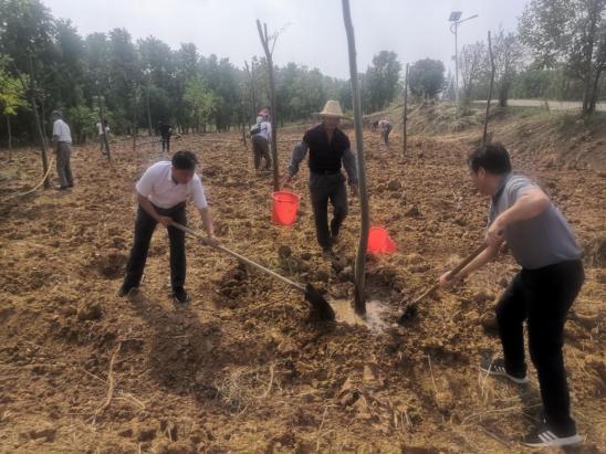 其后,大家來到公司位于浮山村苗圃的幫扶林,領(lǐng)導(dǎo)和公司黨員們一起,兩人一組將從農(nóng)戶新采購的苗木種植到位。大家有的扶樹正苗,有的揮鍬培土,有的踩土定植,配合十分默契,不一會苗圃基地再添一抹新綠。