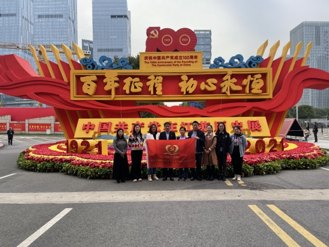 會后,大家集體前往南京國際博覽中心參觀“百年征程 初心永恒——中國共產(chǎn)黨在江蘇歷史展(1921-2021)”,展覽運用圖片圖表、檔案文獻、文物實物、場景模型及新媒體手段,全方位、全過程地展現(xiàn)了中國共產(chǎn)黨的歷史偉業(yè),講述了在黨的領(lǐng)導(dǎo)下,江蘇在百年奮斗中取得的輝煌成就。