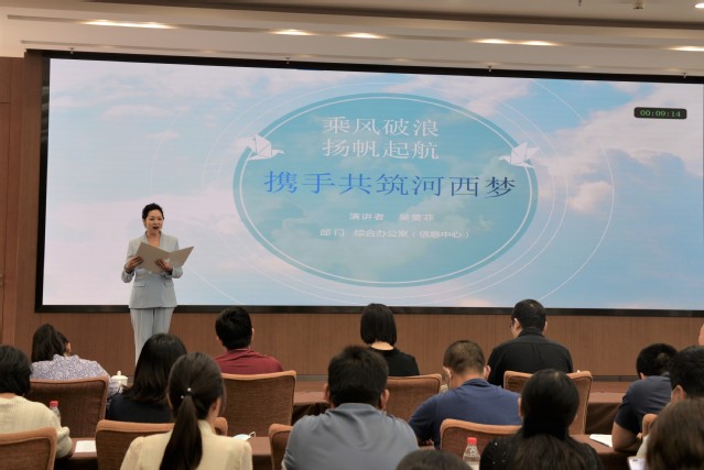 為響應集團黨委號召,進一步貫徹落實集團半年總結大會精神,展現(xiàn)職工昂揚向上的精神風貌,激發(fā)職工干事創(chuàng)業(yè)的豪邁熱情,7月27日,河西集團總部舉辦了“踔厲奮發(fā)向未來 我與河西共成長”主題演講選拔賽。本次選拔賽由機關黨總支和機關工會共同舉辦,共有來自各部室的8組選手參加。各部室主要負責人出席了本次比賽并擔任評委,機關工會主席、辦公室副主任王俊,集團工會副主席、機關黨總支書記、黨群工作部部長蘇小剛發(fā)表講話。