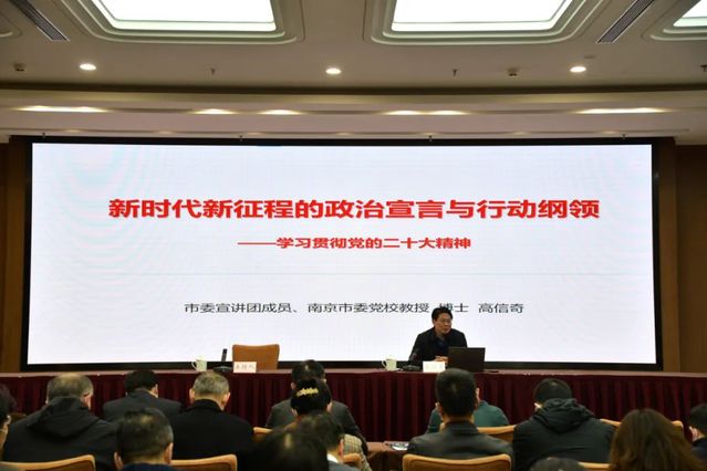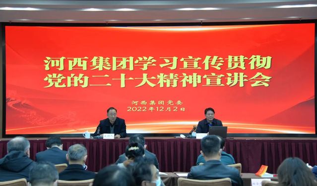 根據(jù)中央和省市委、市國資委黨委部署要求,12月2日下午,河西集團召開學習宣傳貫徹黨的二十大精神宣講會,邀請市委宣講團成員、市委黨??蒲刑幪庨L高信奇教授做專題宣講,進一步引導(dǎo)集團廣大黨員干部職工全面深入學習宣傳貫徹黨的二十大精神,切實把思想和行動統(tǒng)一到黨的二十大精神上來,更加深刻領(lǐng)悟“兩個確立”的決定性意義,不斷增強“四個意識”、堅定“四個自信”、做到“兩個維護”。會議由集團黨委副書記、董事繆昌根主持。集團領(lǐng)導(dǎo)、全體中層干部及集團下屬各公司黨務(wù)工作者參加會議。