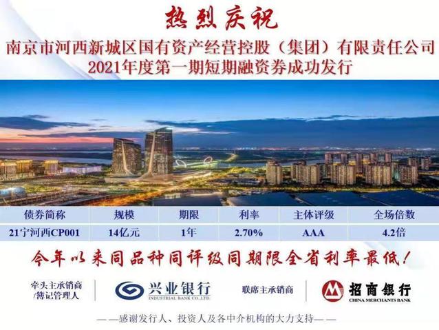南京市河西新城區(qū)國有資產(chǎn)經(jīng)營控股(集團(tuán))有限責(zé)任公司(以下簡(jiǎn)稱“河西集團(tuán)”)成功發(fā)行2021年度第一期短期融資債券。