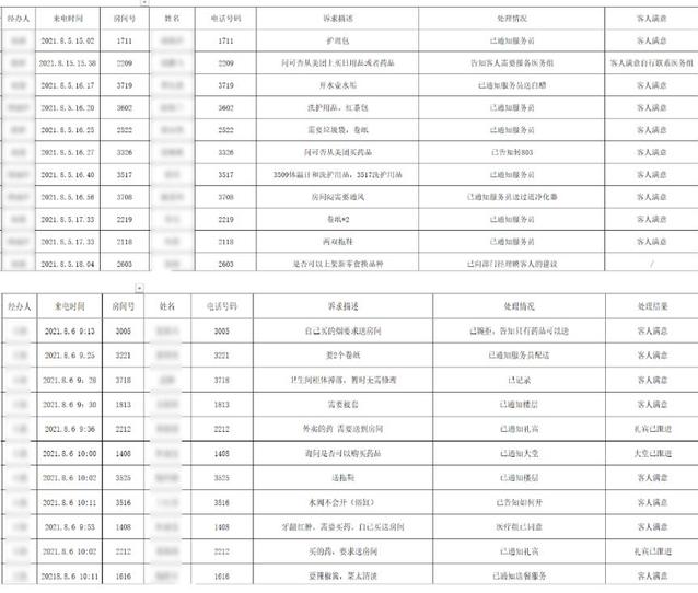“3323房間需要辣椒醬或老干媽”、“2420房間需要免洗洗手液”、“3903房間住客喉嚨不舒服需要藥”……客服中心每天都會接到各種特殊的需求并一一做好記錄,及時聯(lián)系相關(guān)同事協(xié)助采買、送達(dá)。