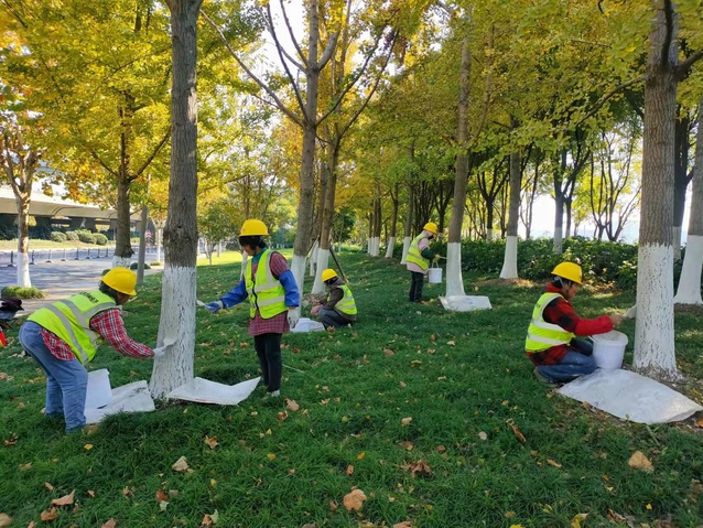 霜降過(guò)后,氣溫有了短暫的回升,但是隨著冬季到來(lái),新一輪寒潮即將悄然來(lái)襲。為增強(qiáng)樹(shù)木的耐寒性及抗蟲(chóng)性,近日,河西集團(tuán)園林公司搶抓晴好天氣,精心組織綠化工人為南京市建鄴區(qū)、南通市崇川區(qū)等公司綠化管養(yǎng)范圍的樹(shù)木刷白“穿新衣”。