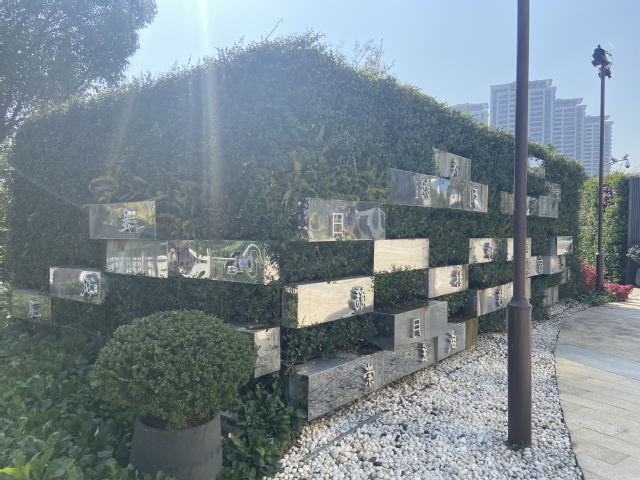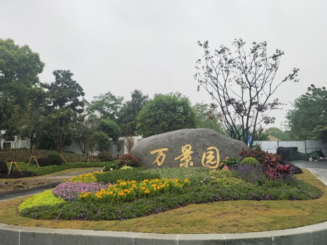 萬景園北入口項(xiàng)目將原始花壇改造成弧形整石花壇,常夏石竹、八仙花、女貞球等彩葉花灌木鋪滿在景觀石的四周,形成植物品種豐富、層次分明的小型花境。入口處增設(shè)標(biāo)有“萬景園”字樣高達(dá)12米的立牌,高大醒目,與魚嘴公園、青年文化公園、綠博園形成了統(tǒng)一的濱江風(fēng)光帶入口標(biāo)識(shí)。