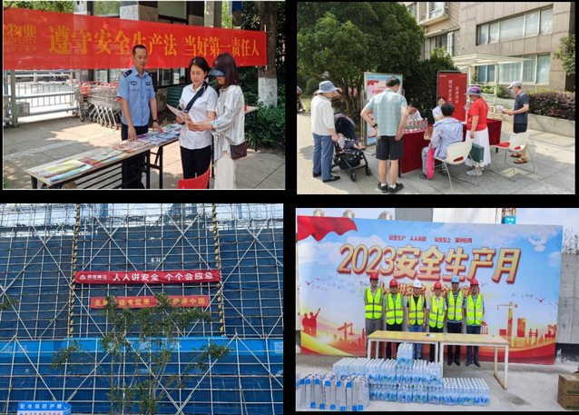 結(jié)合今年“安全生產(chǎn)月”的主題,集團(tuán)通過一系列宣傳活動把“安全生產(chǎn)月”的要求和精神傳導(dǎo)到基層,組織下屬公司策劃了多個深入基層一線、群眾喜聞樂見的宣傳活動。物業(yè)公司舉辦講座6場,懸掛橫幅48條,布置海報架或張貼海報33張,派發(fā)宣傳單800余份,持續(xù)不斷增強活動影響力,形成了階段性宣傳熱潮;紫金商管公司成立義務(wù)宣傳小組,重點在社區(qū)中心、商業(yè)街區(qū)、裝修工地懸掛橫幅10余幅,現(xiàn)場發(fā)放安全生產(chǎn)小貼士、消防逃生小知識、滅火器使用方法等安全知識宣傳冊共計500余份;新城公司設(shè)計制作了安全生產(chǎn)管理宣傳單以及現(xiàn)場應(yīng)急救援知識折頁,將安全生產(chǎn)防范知識傳遞到每個項目、每個工人。