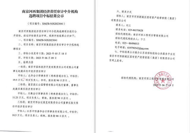 2023年集團(tuán)經(jīng)責(zé)審中介機(jī)構(gòu)選聘項(xiàng)目中標(biāo)結(jié)果公示